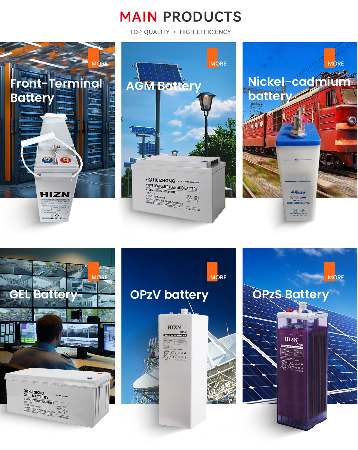 주요 제품:태양 전지, Ups 배터리, 저장 배터리, 젤 배터리, OPzV/OPzS 배터리